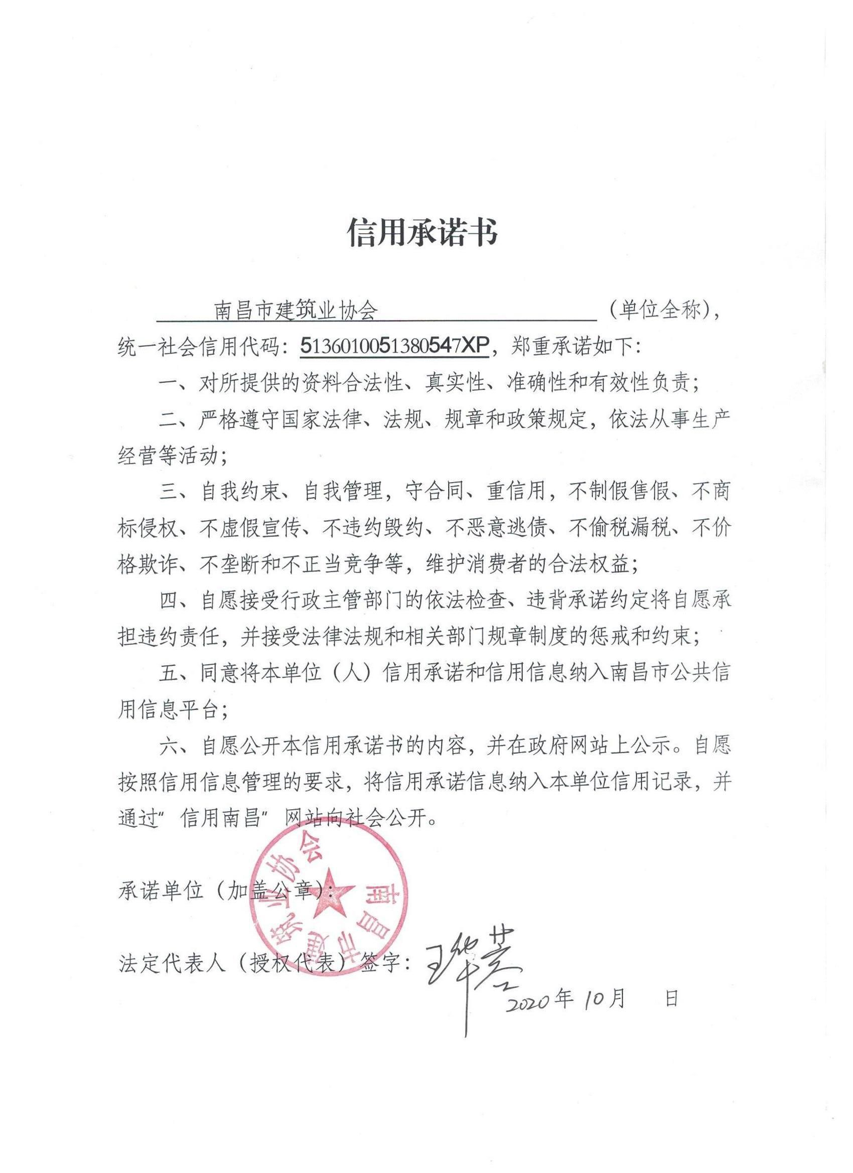 南昌市建筑業(yè)協(xié)會(huì)承諾書